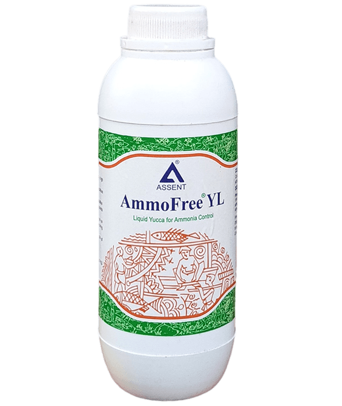 Feed Inclusion: 1ml/kg Mix 5 ml Ammofree-YL in water and apply over 5 kg feed and shade dry for 5 mins before broadcasting into the pond